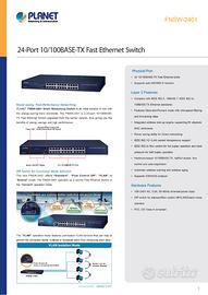 Vendo in buonissime condizioni Switch 24 porte rack Planet FSNW-2401, perfettamente funzionante, causa chiusura attività.
