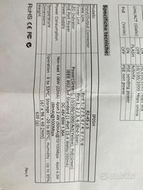 Disponibile switch Gigabit 5 porte di cui 4 sono poe con 15W per ciascuna.60W totali.La quinta porta serve per il collegamento con altri dispositivi di rete.Nuovo mai usato.