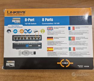 Vendo switch di rete Linksys SD208 a 8 porte. Un dispositivo solido, ideale per espandere la rete cablata in ufficio o a casa in modo semplice e immediato. Caratteristiche: 8 Porte Ethernet: Connessione stabile per tutti i tuoi dispositivi. Plug & Play: Non necessita di configurazione, basta collegare i cavi. Affidabilità Linksys: Brand leader nel settore, costruzione molto più solida rispetto ai modelli economici attuali. Design compatto: Occupa pochissimo spazio sulla scrivania. Condizioni: Perfettamente funzionante, completo di alimentatore originale.