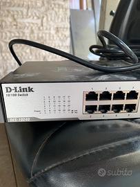 Switch di rete D-Link DES-1024D. • Porte: È dotato di 24 porte Fast Ethernet 10/100 Mbps. • Funzionalità: Supporta la negoziazione automatica della velocità e la modalità Full/Half Duplex su ogni porta. • Installazione: È un dispositivo Plug and Play, facile da installare senza necessità di configurazione.