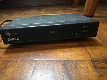"Vendo switch Ethernet ZyXEL ES-105 a 5 porte a 100mbit, ideale per collegare più dispositivi in rete come PC, stampanti, NAS, decoder, console o altri apparati di rete. Dispositivo compatto e semplice da usare, adatto per: casa ufficio piccoli impianti di rete espansione porte LAN Caratteristiche principali: marca ZyXEL modello ES-105 5 porte Ethernet alimentazione esterna indicatori LED frontali di stato e collegamento"