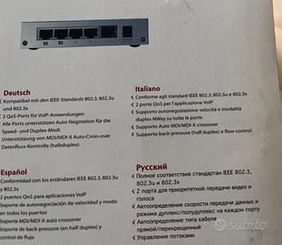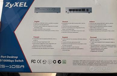 Zyxel Ethernet Switch di rete Zyxel Ethernet Serve per collegare più dispositivi alla stessa rete (PC, stampanti, console, ecc.). Questo modello ha: •5 porte Ethernet •Velocità 10/100 Mbps •Funzionamento plug-and-play (non serve configurazione) Nuovo con confezione
