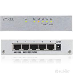 Switch di rete Zyxel, 5 porte (velocità Gigabit), porte QoS 3 a livelli di priorità per gestire al meglio la banda tra gli utilizzatori ad alta velocità (PC, gaming,IP phones, network storage, Nas, telecamere, smart TV, etc. ). Design senza ventole, case ultra compatto e puramente metallico per dissipazione perfetta del calore. Preso per impianto network che in corso d'opera ha richiesto 16 porte lan, rimane dunque nuovo inutilizzato nel cassetto.