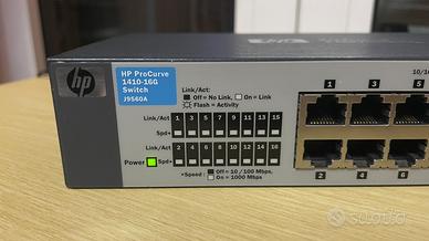Vendo switch HP ProCurve 1410-16G (J9560A) in ottimo stato, testato e perfettamente funzionante. Si tratta di uno switch Layer 2 Gigabit non gestito (unmanaged), ideale per rete domestica avanzata, ufficio, rack domestico, laboratorio o piccoli ambienti professionali. Dispone di 16 porte Gigabit RJ-45 10/100/1000. Design fanless, completamente silenzioso, funziona in modalità plug-and-play senza necessità di configurazione. Caratteristiche tecniche: - Supporto qualità del servizio (QoS) - Quantità di porte RJ-45: 16 - Tipo di porte RJ-45: Gigabit Ethernet (10/100/1000) - Standard di rete: IEEE 802.3, IEEE 802.3ab, IEEE 802.3u - Full duplex - Supporto controllo flusso - Auto MDI/MDI-X - Auto-rilevamento - Capacità di switching: 32 Gbit/s - Throughput: 23,8 Mpps - Dimensioni tavola MAC: 8192 voci - Latenza (10-100 Mbps): 8 μs - Latenza (1 Gbps): 3,6 μs - Buffer di memoria pacchetto: 0,5 MB - Memoria flash: 0,5 MB - Tensione di ingresso AC: 100 - 240 V - Frequenza di ingresso AC: 50 - 60 Hz - Consumi 13 W - Supporto Power over Ethernet (PoE): NO - Larghezza 209 mm - Profondità 112 mm - Altezza 44 mm - Peso 0,65 kg Condizioni estetiche ottime, come da foto. Spedisco in imballaggio adeguato (no scatola originale), completo di alimentatore. Articolo disponibile se annuncio visibile. Visionabile e testabile a piacere e senza impegno presso mio domicilio in San Donato Milanese (MI). Scambio a mano o spedizione con TuttoSubito.