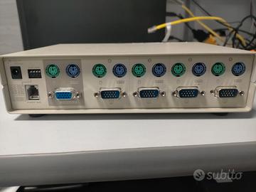 switch interfaccia pc/2 e vga che permette di operare fino a 4 pc allo stesso tempo, necessaria una alimentazione a 9V dc (non inclusa), possiede anche porta necessaria per operarlo da pedale.