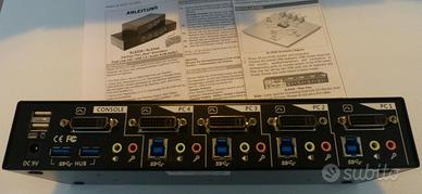 Vendo switch KVM UNICLASS con HDMI (fino a 1920x1080p), hub USB 3.0 e hub audio (line-out e microfono), per il collegamento fino a 4 PC. Velocissimo nella commutazione tramite i comodi e sensibili 4 tasti touch frontali oppure tramite combinazione di tasti da tastiera. Con questo dispositivo potete lavorare con 4 pc, avendo sulla scrivania un solo monitor, un solo mouse ed una sola tastiera! Lo switch funziona anche con mini tastiere con touchpad integrato. L'oggetto viene ceduto con i cavi di collegamento tra switch e i 4 PC con adattatori da DVI a HDMI. E' gradita la consegna a mano oppure la spedizione con costo a carico dell'acquirente.
