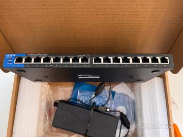 Linksys LGS116P-EU Switch di rete Gigabit non gestito a 16 porte, 1.000 Mbps, 8 porte PoE+, per aziende, uffici domestici, sorveglianza IP, sdoppiatore Ethernet per desktop.