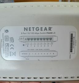 Switch desktop da scrivania Netgear 8 porte FastEthernet 10/100 Mbps, modello FS608v3, UNMANAGED, con alimentatore tipo spina "italiana".