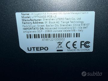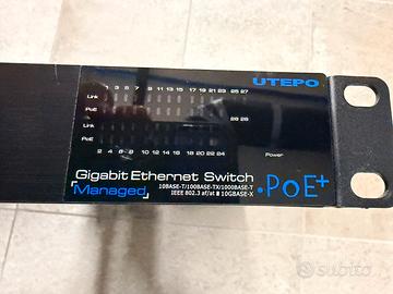Vendo switch professionale UTEPO UTP7624GE-POE-L3, mai utilizzato, solo privo di scatola originale. Switch Layer 3 managed di fascia professionale, ideale per impianti di rete strutturati e videosorveglianza. Caratteristiche principali: •24 porte Gigabit Ethernet PoE (IEEE 802.3af/at) •4 porte uplink SFP+ 10G •Gestione completa Layer 3 (routing, VLAN, QoS, ecc.) •Gestione PoE intelligente •Capacità di switching 128 Gbps •Throughput 96 Mpps •Protezione sovratensioni fino a 6 kV •Installazione rack 19” Perfetto per: videosorveglianza IP, access point Wi-Fi, telefoni VoIP, reti aziendali e impianti professionali. Condizioni ottime come da foto. Venduto senza scatola.