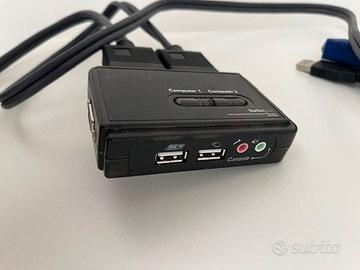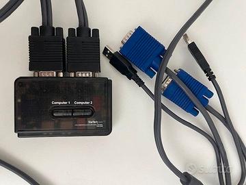SWITCH STARTEC DOPPIO INGRESSO 2 PORTE USB AUDIO AND CABLES COLORE NERO KVM USB con audio e cavi, Commutatore VGA USB a doppia porta, Colore Nero