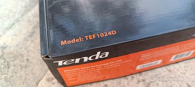 Switch Tenda 24 porte 10/100, modello TEF1024D, usato ma perfettamente funzionante. Dotato di cavo di alimentazione mai usato e staffe per installazione su rack dati.