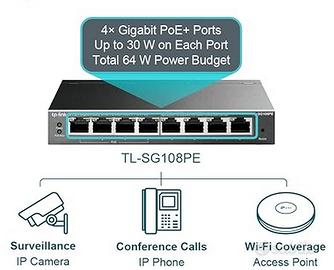 TP-Link Switch Gigabit TL-SG108PE Easy Smart con 4 porte PoE+ (64 watt, porte RJ-45 schermate, IEEE-802.3af/at, configurazione semplice, senza ventola), nero/antracite, 8 porte PoE Smart