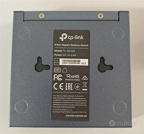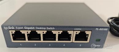 Switch TP-Link gigabit 5 porte (20) Switch di rete marca TP-Link modello TL-SG105. 5 porte autoconfiguranti Plug-and-play, con una velocità massima di 1 Gbps. Case in metallo. Alimentatore incluso.