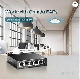 Lo switch desktop tl-sg1005p con 5 porte 10/100/1000mbps di cui 4 con supporto poe, è la scelta adatta per endere la rete