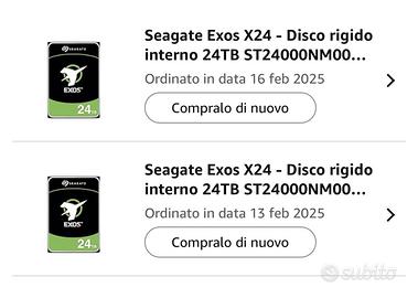 I due hard disk da 24Tb l’uno sono stati acquistati a febbraio 2025 con 1x estensione di garanzia assicurativa guasti e/o danni accidentali per 4 anni (amazon), restano ancora 4 anni (scadenza garanzia guasti 15/02/2029)
