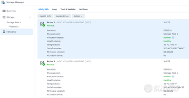 Con scatola originale e accessori, perfettamente mantenuto, dotato di due HD Western Digital RED da 4 TB in perfetto stato di salute (come da screenshot).