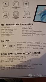 Dispone di wifi 2.4/5 ghz. 8 gb Ram e 128 gb di rom. Risoluzione 1280x800. Batteria 8000 mA.Fotocamere 5mp + 8 mp. Android 13.Slot x micro Sd