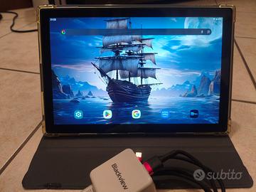 Tablet Blackview Tab 8, condizioni discrete, presenta segni da uso quotidiano ed è leggermente rovinata la scocca (non è possibile inserire il jack audio per questo motivo), perfettamente utilizzabile per il resto. Display da 10' con risoluzione 1920x1200, memoria da 64gb espandibile e 4gb di memoria interna. Vendo completo di caricatore con cavo, cuffie mai usate, custodia cover e confezione originale. Monta Android 10 e ha una batteria da 6580mAh.