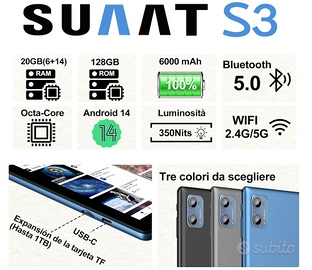 Vendo SUAAT Newest Tablet Android 14 con schermo da 10 pollici, assolutamente nuovo, mai usato. Aperto solo per fare le foto.
