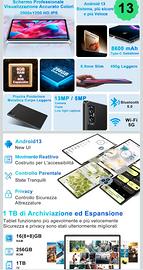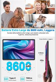 Vendo Tablet Android 11 pollici con 16 GB RAM e 256 GB di memoria interna espandibile. Processore octa core 2.0 ghz wifi, batteria 8600mah. Perfetto per ufficio, scuola o svago. Nuovo nella sua scatola con custodia protettiva in omaggio vendo con formula visto e piaciuto. bari