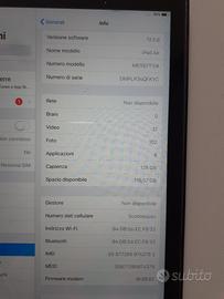 Tablet Apple iPad Air 1 (Mod. A1475) ios 12.5.8 con memoria da 128GB e connettività Wi-Fi + Cellular (4G). Perfettamente funzionante con buona batteria che garantisce un utilizzo fino a 2 giorni. Presenti sugli angoli del telaio alcuni segni di normale utilizzo. Vetro Protettivo temperato 9H applicato allo schermo. Fornito con Cover (Usata) e carica batteria originale Apple