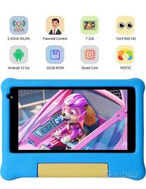 Kids Tablet Bambini 7 Pollici Android 12 Tablet, Quad-core Processore, Doppia Fotocamera, Controllo Parentale, Tablet per Bambini con Custodia(Blue). Nuovo mai usato ancora nello scatolo .