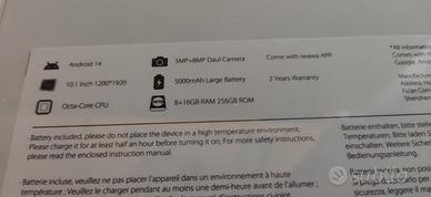 Android 14, Schermo 10 Pollici, 8+16GB RAM+256GB ROM, 1920 * 1200 FHD Display, Octa Core CPU, Widevine L1,, 5G WiFi, Batteria da 5000mAh inclusa, BT 5.0, 5MP+8MP Dual Camera