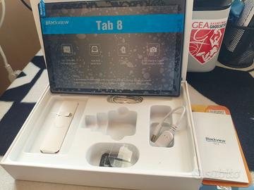 Tablet Blackview Tab 8, condizioni discrete, presenta segni da uso quotidiano ed è leggermente rovinata la scocca (non è possibile inserire il jack audio per questo motivo), perfetto per utilizzo quale streaming o navigazione. Display da 10' con risoluzione 1920x1200, memoria da 64gb espandibile e 4gb di memoria interna. Vendo completo di caricatore con cavo, custodia e confezione originale. Monta Android 10 e ha una batteria da 6580mAh.