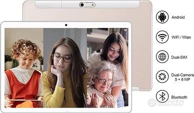 Tablet GOODTEL 10 Pollici, Android 10.0, Tablet PC WiFi + Cellulare Dual SIM LTE, capacità 4GB RAM e 64GB ROM, espandibile fino 1TB TF, Bluetooth, GPS, colore Oro, NUOVO ED IMBALLATO IN CONFEZIONE!!