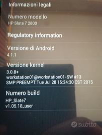 Per passaggio a modello superiore, cedo tablet 7' HP modello Slate 7 2800, Android 4.1.1. 8GB, ram 1GB.