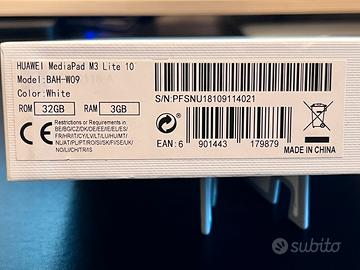 Tablet Huawei MediaPad M3 Lite Wifi, Display 10.1”, Octa-Core, Ram 3 GBb, memoria interna 32Gb, colore Bianco.