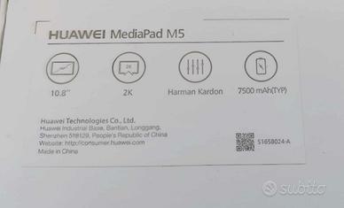 Tablet Huawei Mediapad M5 10.8 pollici, 4G, ( 4 GB ram, 32GB rom ) sistema operativo Android, speaker audio by Harman Kardon, Display ips nitidoe luminoso con 290 ppi, batteria da 7500 mah, che tutt' ora dura ancora 2 giorni con un uso moderato.