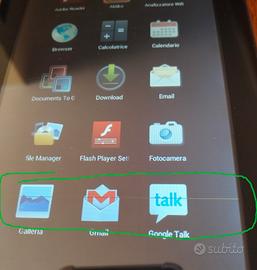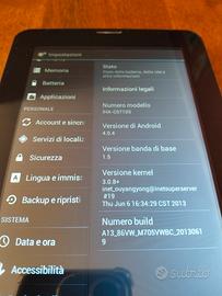 Tablet funzionante, schermo esternamente senza segni, mentre quando acceso presenta una riga come si vede nelle foto. Il retro del tablet è leggermente rovinato come in foto. Inoltre le caratteristiche sono indicate nelle foto. NON è presente carica batteria e scatole.