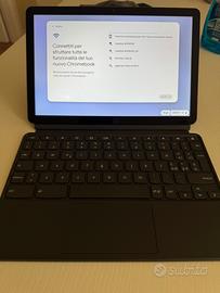 Perfetto per navigazione web, Netflix, YouTube e smart working leggero.Estremamente portatile e leggero. modello CT-X636F. Caratteristiche: • Schermo 10.1" Full HD Touch • Memoria 64GB. • Tastiera magnetica originale staccabile e cover posteriore con stand inclusi • Tenuto in maniera maniacale, batteria con ottima autonomia, nessun graffio sullo schermo. • Sistema ChromeOS Completo di scatola originale e alimentatore originale, più cover Processore MediaTek Helio P60T Cores 4x A73 + 4x A53 Threads 8 Frequenza massima A53@2.0GHz / A73@2.0GHz Memoria LPDDR4x 4Gb Processore grafico ARM Mali-G72 MP3 GPU Memoria interna eMMC 5.1 64GB Standard Ports: 1x USB-C 2.0 (support data transfer, OTG, Power Delivery, and DisplayPort™)