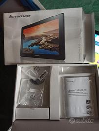 vendo tablet LENOVO A10 70 perfettamente funzionante in ottimo stato di conservazione, come nuovo. Completo di imballaggio originale, libretto di istruzioni e cover per proteggerlo e utilizzarlo in posizione "leggio". La cover è integra ma mostra segni di usura.