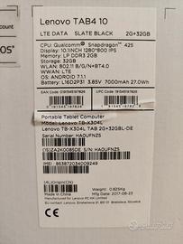 Vendo tablet Lenovo Tab 4 10 per inutilizzo Ottime condizioni Possibilità di inserire SIM Specifiche tecniche dettagliate in foto Prezzo leggermente trattabile