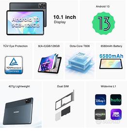 DOOGEE T10E Tablet 10 Pollici Android 13, 9GB + 128GB/1TB, 10.1" HD+ IPS Display Tablet, 5G WiFi+4G LTE, Octa-Core, Google GMS, 6580mAh, 5MP+8MP, Tablet PC Dual SIM/OTG/GPS/BT5.0/Face ID, Grigio. Nuovo mai usato ancora nello scatolo