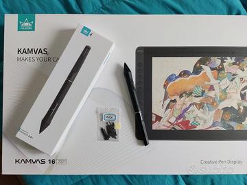 Per passaggio a modello superiore, vendo questa tavoletta grafica con monitor, marca Huion, modello KAMVAS 16 versione 2021, in perfetto stato di funzionamento, pannello e film protettivo perfetti, scatola e cavetteria originale (cavo 3 in 1, cavo usb-c/usb-c, prolunga usb e usb-c, alimentatore), penna PW517 con a corredo il guanto, il portapenna e 10 pennini di riserva (5 in plastica e 5 in feltro). La tavoletta è stata acquistata il 9 maggio 2025 presso il noto store online quindi ancora in piena garanzia. Per le caratteristiche tecniche e le specifiche visitare il sito del produttore. Massima priorità per la cosegna a mano e possibilità di provare la tavoletta grafica al mio domicilio e senza impegno. Se devo spedire, non mi assumo nessuna responsabilità per danni o malfunzionamenti post vendita non dipendenti dalla mia volontà. Non accetto resi o lamentele di alcun tipo, questo va sottoscritto prima dell'acquisto, anche perchè è ancora in garanzia, posso fare video prova prima della spedizione che ne attesta il perfetto funzionamento. Massima serietà.