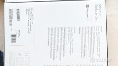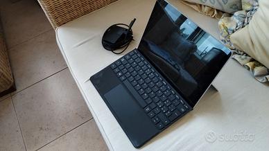 Vendo tablet pc della Microsoft modello surface Go3 con tastiera staccabile che fa da cover colore nero + carica batteria originale + scatola originale. Microsoft Surface GO3 notebook 8GB RAM e 120GByte di archiviazione. Schermo 10,5" touch screen . Windows 11 Home. Perfettamente funzionante usato pochissimo e senza graffi. Il dispositivo due-in-uno Surface con touchscreen più comodo da trasportare. Progettato per ottenere il meglio di Windows 11, Surface Go 3 è ottimizzato per il tocco e la penna digitale, ha un veloce processore Intel® e la versatilità di un laptop convertibile in tablet. Progettato per chiunque, pronto ovunque Esplora, lavora, gioca, impara, segui le tue serie preferite ovunque ti trovi su un eccezionale dispositivo due-in-uno, che sostituirà il tuo tablet e il tuo portatile. Una batteria che dura tutto il giorno Fino a 11 ore di autonomia durante gli spostamenti e Ricarica rapida, per ricaricare subito la batteria quando devi collegare il dispositivo alla rete elettrica. La mobilità di un tablet e la produttività di un portatile Surface Go 3 è piccolo e facile da utilizzare per tutti i membri della famiglia. Hai avuto un'idea? Regola il sostegno integrato all'angolo perfetto per prendere appunti, disegnare diagrammi e fare schizzi con la penna per Surface (accessori in vendita separatamente). Connettiti in movimento Collega gli accessori che usi ogni giorno con la porta USB-C®, il connettore jack per cuffie, Bluetooth 5.0 e il lettore di schede MicroSDXC. Qualità video sorprendente, suono eccellente Resta in contatto con le webcam HD da 1080p anteriore e posteriore e due microfoni Studio. Prova la tecnologia Dolby® Audio™ integrata, perfetta per ascoltare lezioni online, musica o audiolibri e per seguire le tue serie preferite.