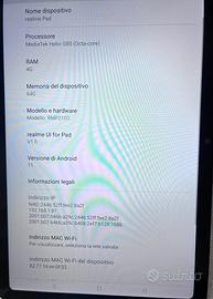 Tablet Realme pad Completo di tutto, scatola, caricabatterie Ram 4G Memoria del dispositivo 64G Versione di Android 11 Come nuovo