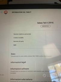 Tablet Samsung Tab A (2016) codice modello SMT585 wi fi piu cellular
