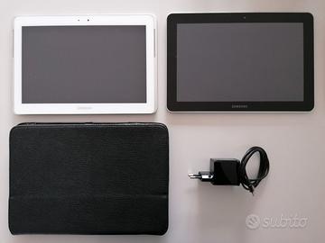 Tablet Samsung Galaxy Tab 10.1 Per gli appassionati Samsung! Il pacchetto comprende: Nr. 1 - Samsung Galaxy Tab 2 10.1 16GB/WiFi/SIM colore Bianco Nr. 1 - Samsung Galaxy Tab 1 10.1 16GB/WiFi/microSD colore Nero Nr. 1 - Custodia in pelle nera Nr. 1 - Alimentatore originale Tutte le caratteristiche tecniche in foto. Perfettamente funzionanti. Batterie con ottime prestazioni. Slot per SIM disponibile nel modello TAB2. Il prezzo è super scontato, non sono possibili altri ribassi. No Perditempo, grazie. N.B.: E’ necessario aggiornare Android. ***SI VENDE TUTTO IL PACCHETTO*** Gli articoli sono disponibili in negozio con sede a Battipaglia (SA) – Campania. Per gli utenti fuori zona è possibile usufruire della spedizione gestita da Subito.it