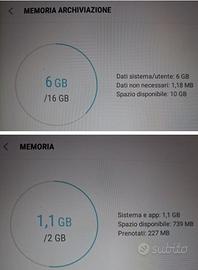 Capacità memoria interna: 16 GB. RAM installata: 2 GB.