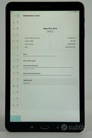 Sono un rivenditore, emetto regolare fattura di vendita IVA 22% per i possessori di partita IVA, equivalente scontrino per acquirente privato garanzia 3 mesi batteria esclusa PREZZO NON TRATTABILE Tablet Samsung Modello TAB A6 SM-T585 Memoria 32 Gb espandibile tramite micro SD versione Wifi + cell 4G perfettamente funzionate nessuna riparazione eseguita tutto originale senza scatola alimentatore e cavo nuovi non originali schermo senza graffi 1 angolo rovinato vedi foto batteria in ottimo stato