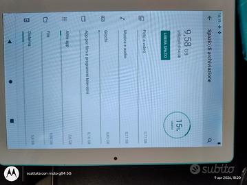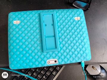 Tablet Mediapad Sannuo K101 con cover in silicone azzurra che al il Reggio rotto, ma il resto protegge bene. Tablet da 10.1', RAM 4gb rom archiviazione 64gb, versione android 10, tutto come da foto. Lo ha usato un bimbo quindi lo schermo un po' graffiato, ma non si nota durante l'uso. Ottimo per streaming o studio, con uso della maggior parte delle app del play store ad eccezione di app che necessitano maggiori prestazioni. Ha ancora molto da offrire. Prezzo un po' trattabile
