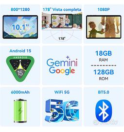 TABWEE T80 Android 15 Tablet con Tastiera - 18 GB RAM+ 128GB ROM(2 TB TF), Tablet10 Pollici, 6000 mAh, 5MP+2MP, Gemini AI, 5G WIFI, GPS, Face ID, 3.5mm Jack Port