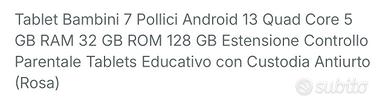 Tablet Bambini 7 Pollici Android 13 Quad Core 5 GB RAM 32 GB ROM 128 GB Estensione Controllo Parentale Tablets Educativo con Custodia Antiurto (Rosa)