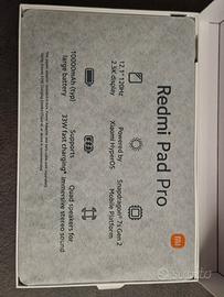 Vendo per inutilizzo tablet Xiaomi Readmi Pad Pro da 12,1 pollici, 6 Gb di ram , 128 Gb di hd. Ricevuto in regalo inizio anno ed usato solo 3 volte, come nuovo senza graffi ne segni di usura, perfettamente funzionante.
