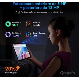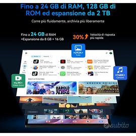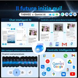 TABWEE T90 WiFi Tablet Android 16 11 Pollici 24GB+128GB 8000mAh Gemini AI GPS TABWEE T90 Tablet da 11 pollici Android 16 - Gemini AI, 8000mAh, 24GB RAM+128GB ROM/2TB TF, Octa-Core T615, Widevine L1, WiFi 5G, Fotocamera 5MP+13MP, Riconoscimento Facciale, GPS, BT5.0 - Inclusi Tastiera e Mouse Android 16 & Gemini AI - Il Tuo Partner Intelligente Il tablet TABWEE T90 funziona con il nuovissimo Android 16 ed è dotato della tecnologia Gemini AI per un'esperienza unica in termini di sicurezza, multitasking e adattabilità. La crittografia avanzata dei dati e le impostazioni di privacy complete garantiscono la massima protezione, mentre l'interfaccia intuitiva ti consente di personalizzare widget, schermo diviso e molteplici profili utente. Grazie all'intelligenza artificiale, questo tablet apprende le tue abitudini, ottimizza le prestazioni in tempo reale e rende le attività quotidiane senza sforzo. Ideale per professionisti creativi e studenti. Schermo FHD+ da 11 pollici & Processore Potente & WiFi 5G Lo schermo IPS da 11 pollici (1920x1200) con certificazione Widevine L1 offre colori vivaci e dettagli nitidissimi - perfetto per modificare foto o guardare serie TV in qualità HDR. Il processore octa-core Unisoc T615 garantisce velocità nelle applicazioni impegnative come AutoCAD o nel gaming online, mentre la connettività 5G assicura download velocissimi e videochiamate stabili. Con soli 505 grammi e uno spessore di 8,3 mm, questo tablet 5G unisce potenza e portabilità per l'uso in ufficio, in viaggio o durante le lezioni online. 24GB RAM + 128GB ROM & 2TB Espandibile Con 24GB di RAM (8GB fisici + 16GB virtuali) e 128GB di archiviazione interna, il TABWEE T90 gestisce senza sforzo giochi pesanti, applicazioni professionali e streaming 4K senza interruzioni. Espandi la capacità di archiviazione fino a 2TB con una scheda TF per tutti i tuoi film, foto o progetti di lavoro. La tecnologia di memoria ottimizzata riduce il consumo energetico, permettendoti di lavorare