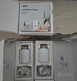 Tado V3+ ponte ethernet + 3 teste termostatiche. Comodissime ed adatte per qualsiasi tipo di termosifone (ogni confezione contiene adattatori per ogni tipologia di valvola). Tramite il ponte si collegano ad internet pertanto possono essere attivate da remoto tramite app oltre che essere programmate su base giornaliera.